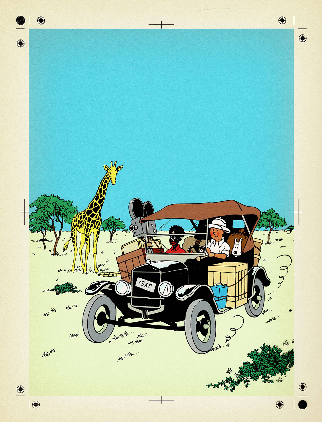 Tintin au Congo, bleu de coloriage et son film noir pour la couverture de l’album. Dimensions : 41 cm x 32,5 cm.