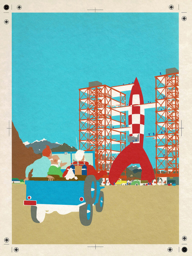 Tintin, Objectif Lune, bleu de coloriage et son film noir pour la couverture de l’album. Dimensions : 41 cm x 32,5 cm.