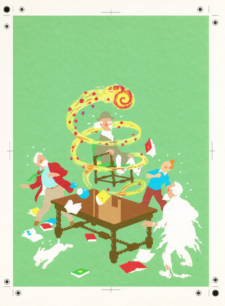Tintin, Les 7 Boules de Cristal, bleu de coloriage et son film noir pour la couverture de l’album. Dimensions : 41 cm x 32,5 cm.