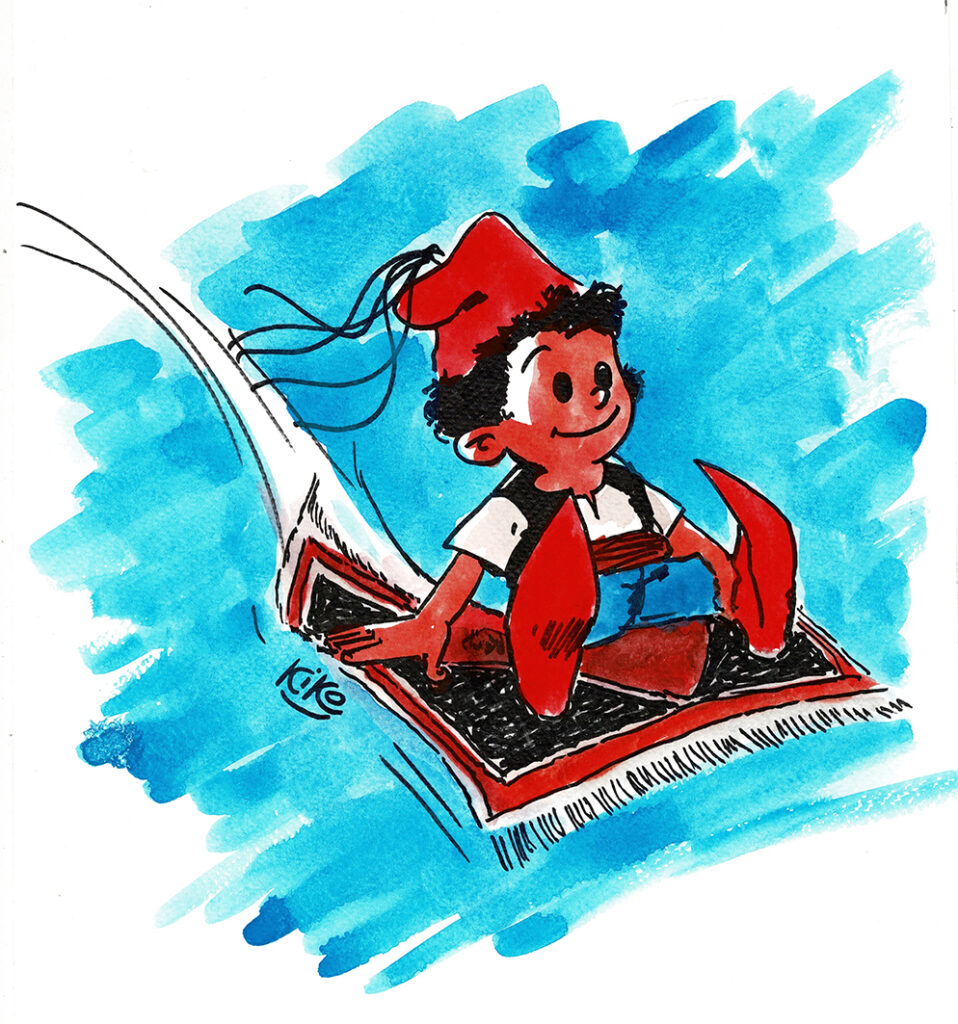 Foufi, dessin original au feutre fin et à l’aquarelle. Dimensions : 33 cm x 26 cm.