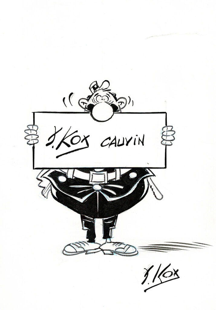 L’agent 212, dessin original à l’encre de chine publié dans le journal Spirou. Dimensions : 20 cm x 12,5 cm.