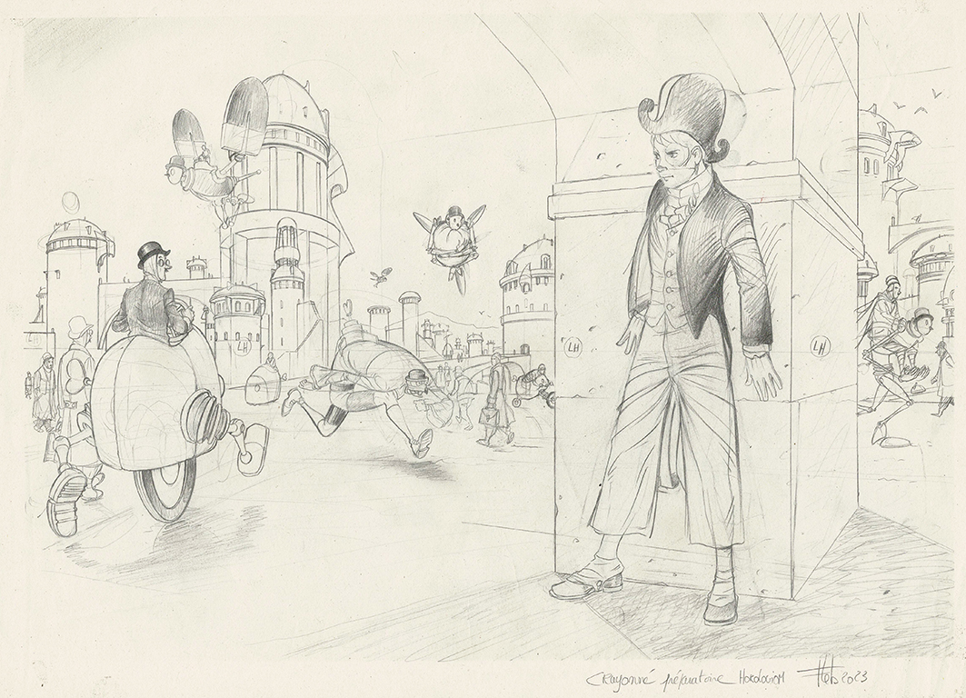 Horologiom, dessin original à la mine de plomb. Dimensions : 41 cm x 29,5 cm.