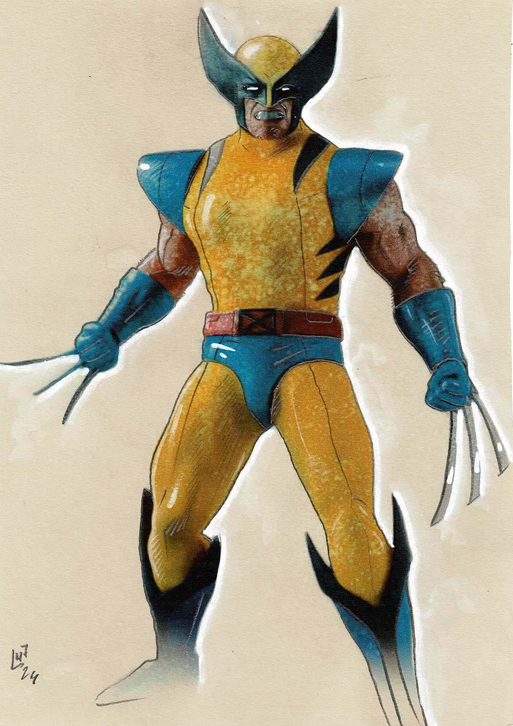 Wolverine, dessin original en couleurs directes. Dimensions : 29,5 cm x 21 cm.