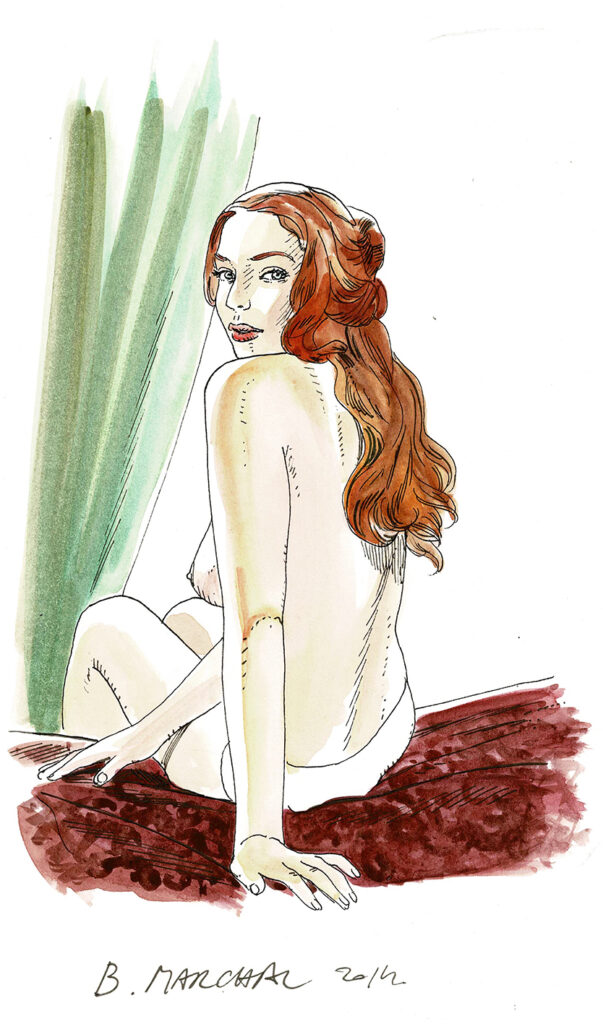 Dessin original à l’encre de chine et à l’aquarelle. Dimensions : 29 cm x 20,5 cm.