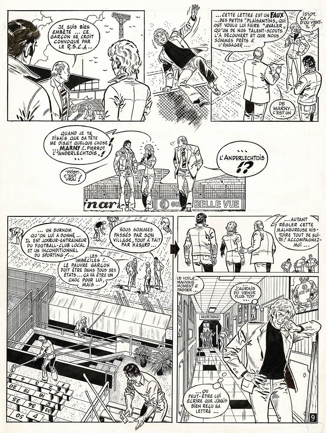 Section R, L’Anderlechtois, planche originale à l’encre de chine. Dimensions : 46,5 cm x 33,5 cm.