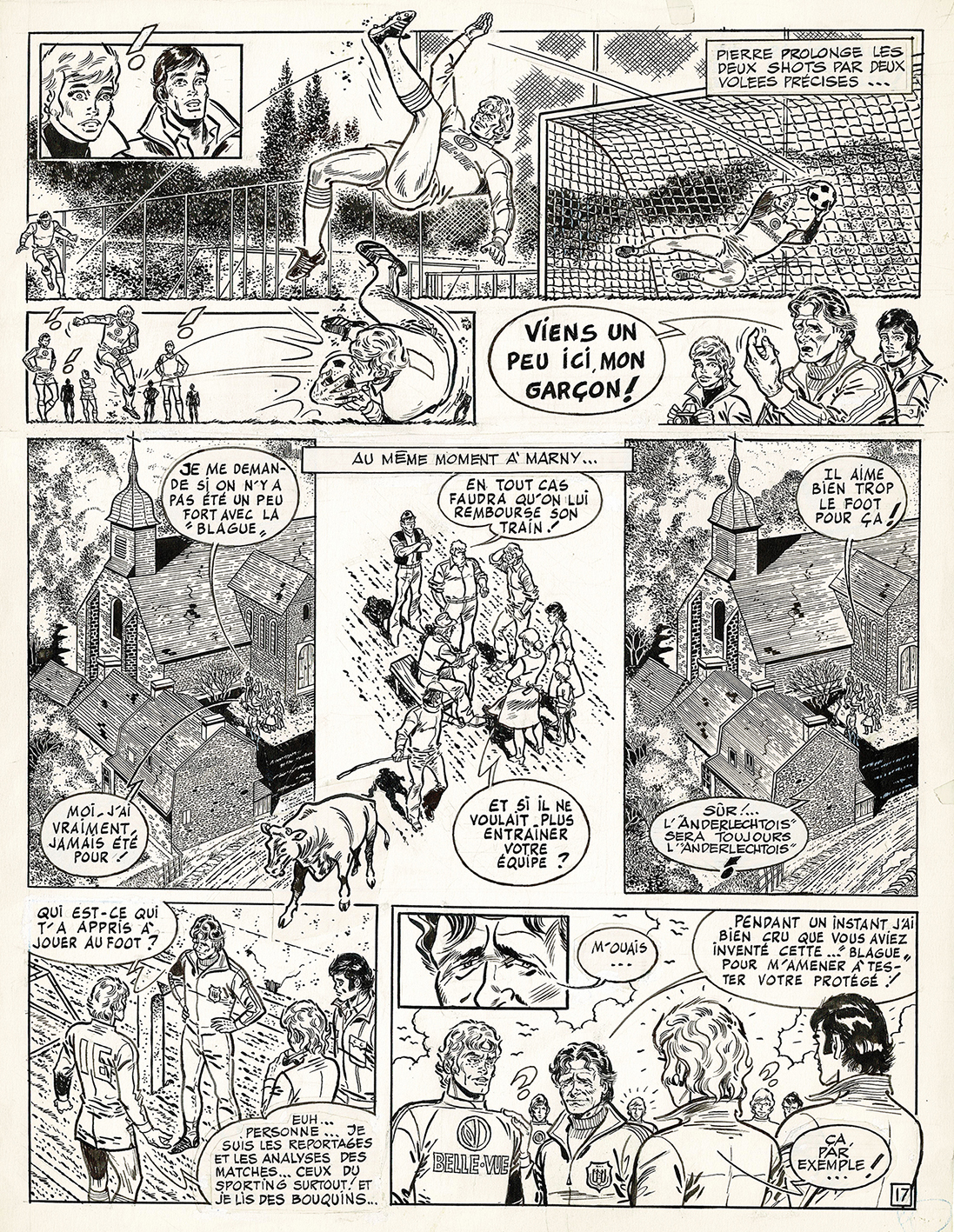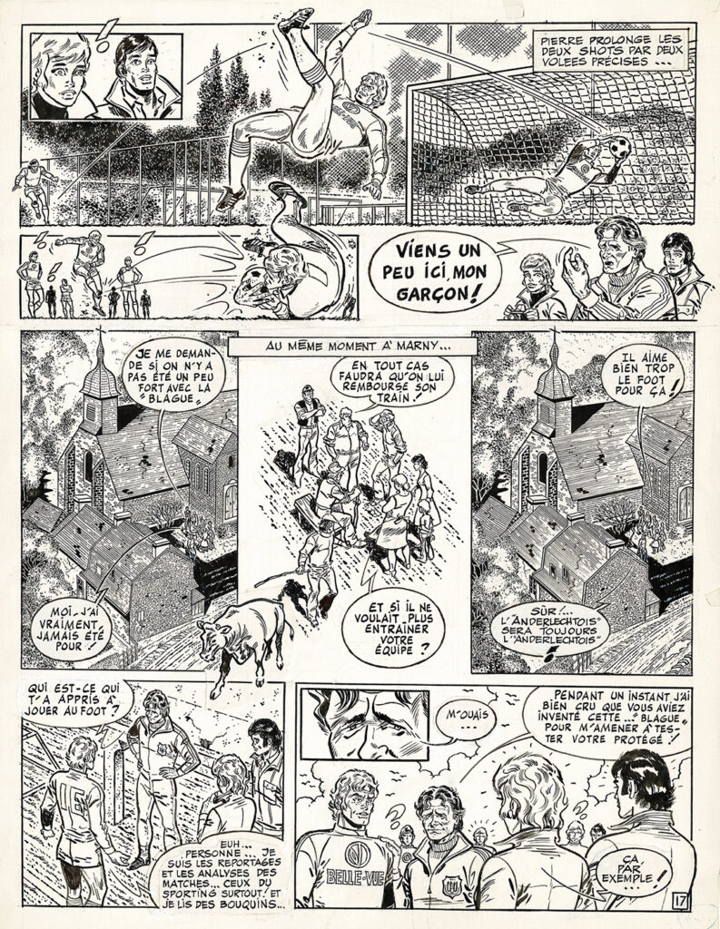 Section R, L’Anderlechtois, planche originale à l’encre de chine. Dimensions : 46,5 cm x 33,5 cm.