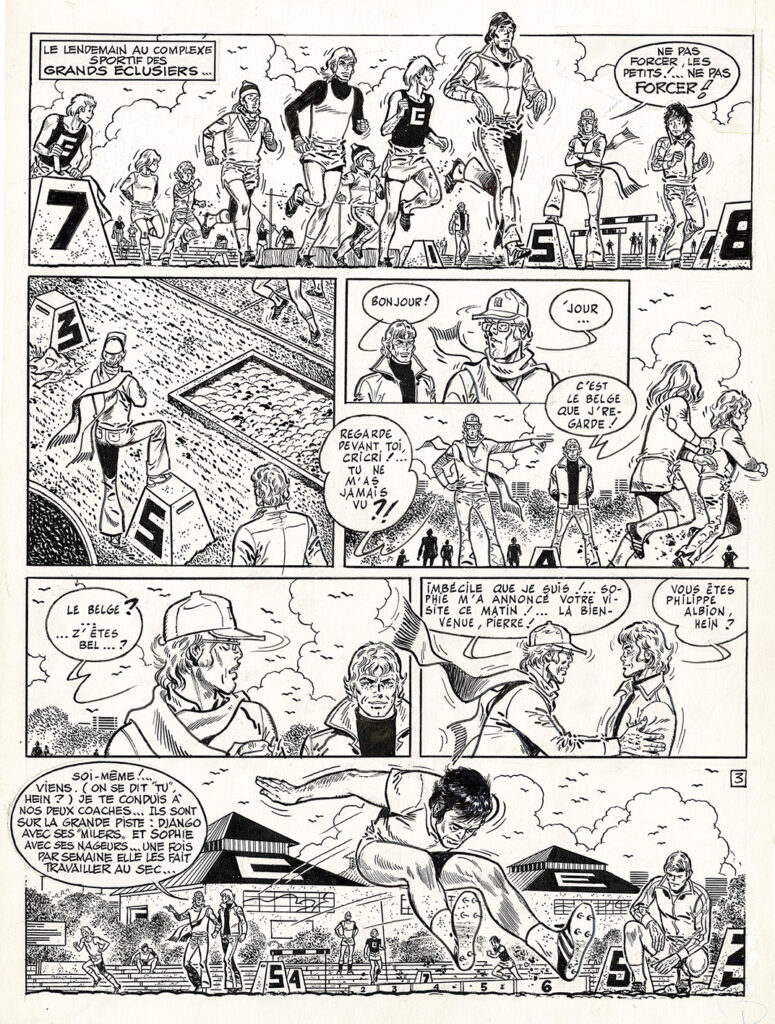 Section R, L’Anderlechtois, planche originale à l’encre de chine. Dimensions : 46,5 cm x 33,5 cm.