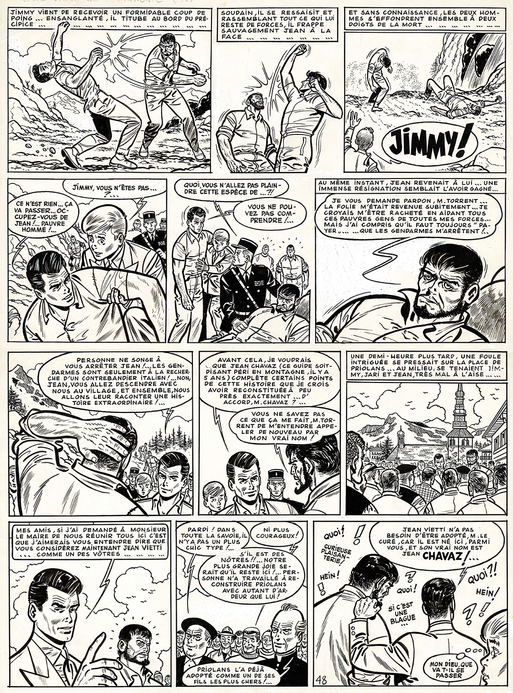 Jari dans la tourmente, planche originale à l’encre de chine pour cet album paru en 1961 au Lombard. Dimensions : 67,5 cm x 47,5 cm.