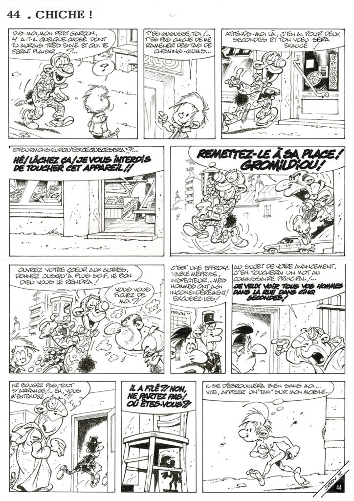 Les Petits Hommes, Chiche !, planche originale à l’encre de chine. Dimensions : 40 cm x 30 cm.