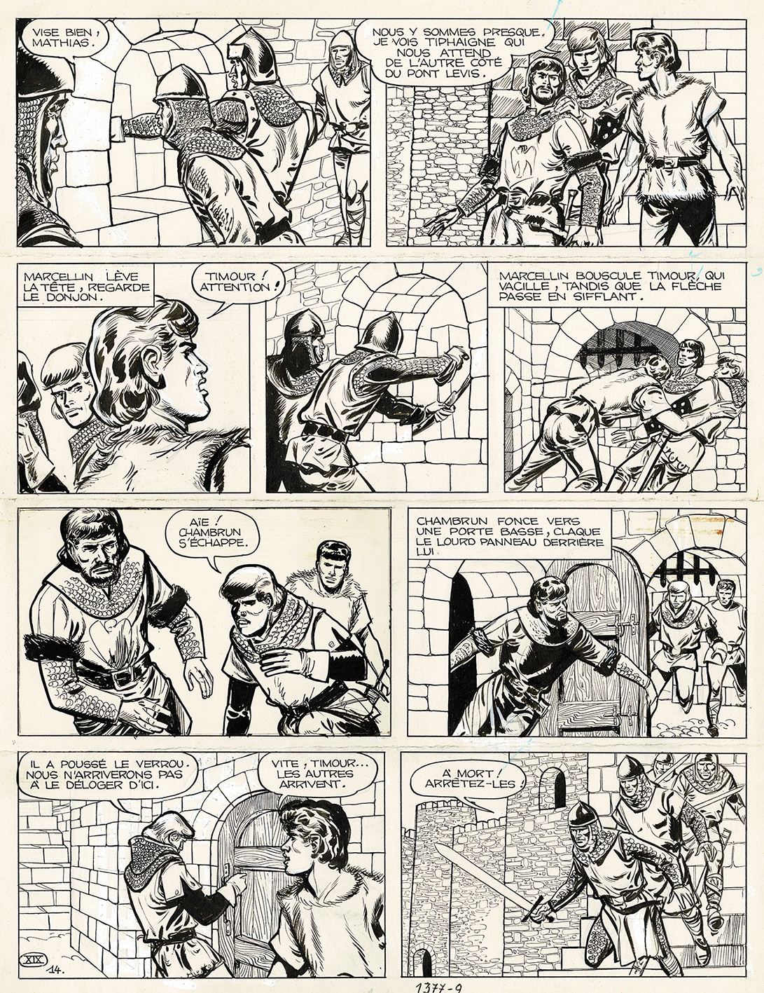 Les Timour, Le fils du croisé, planche originale à l’encre de chine. Dimensions : 53 cm x 41,5 cm.