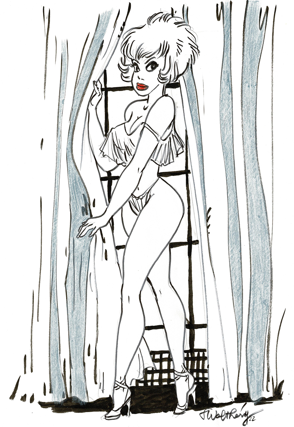 Natacha, dessin original à l’encre de chine et à l’aquarelle, cachet de Walthéry au verso. Dimensions : 42 cm x 29,5 cm.