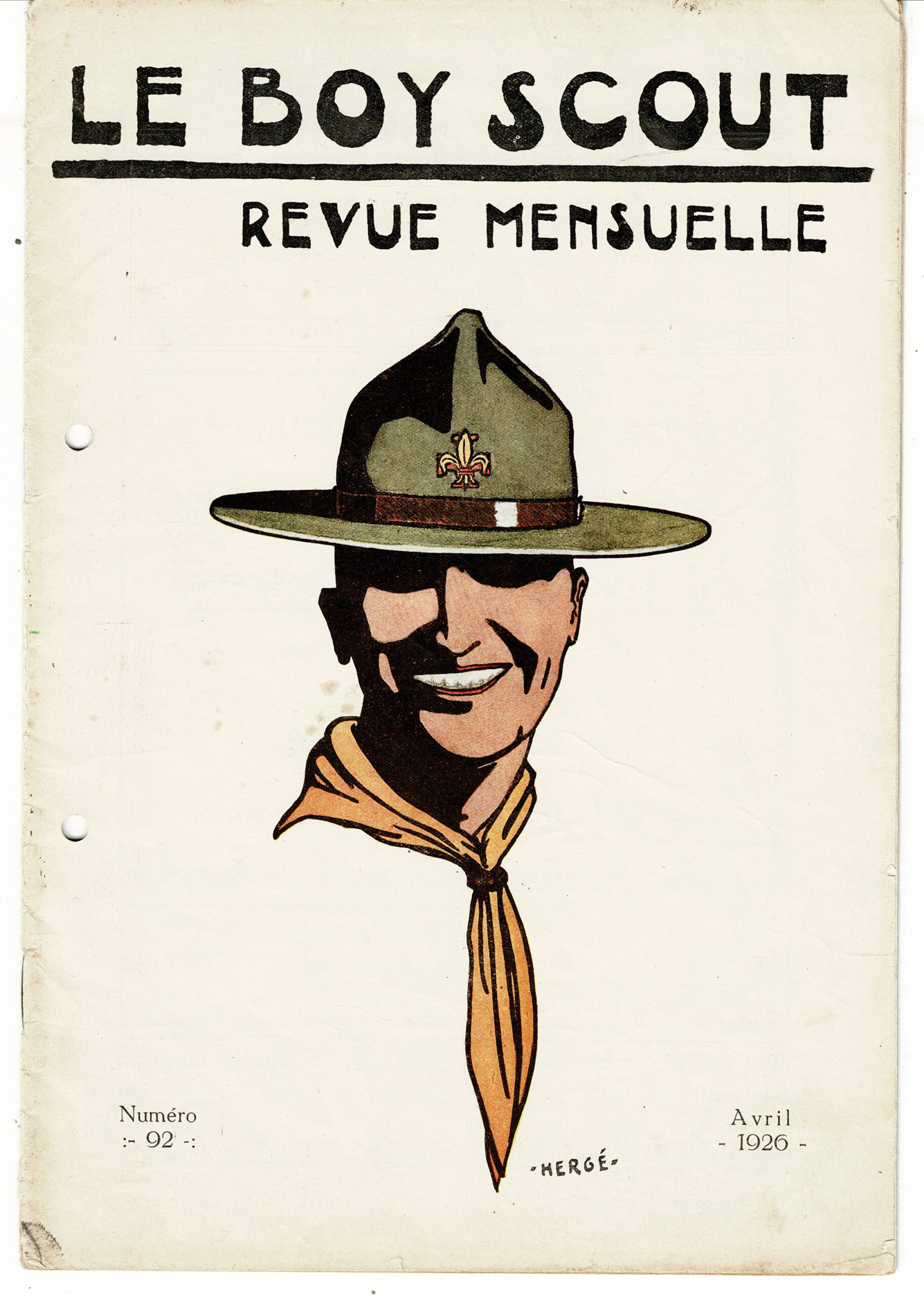 Le Boy Scout n° 92 d’avril 1926. On joint une invitation de l’unité Saint-Boniface (unité d’Hergé) datant du 14 mai 1953.