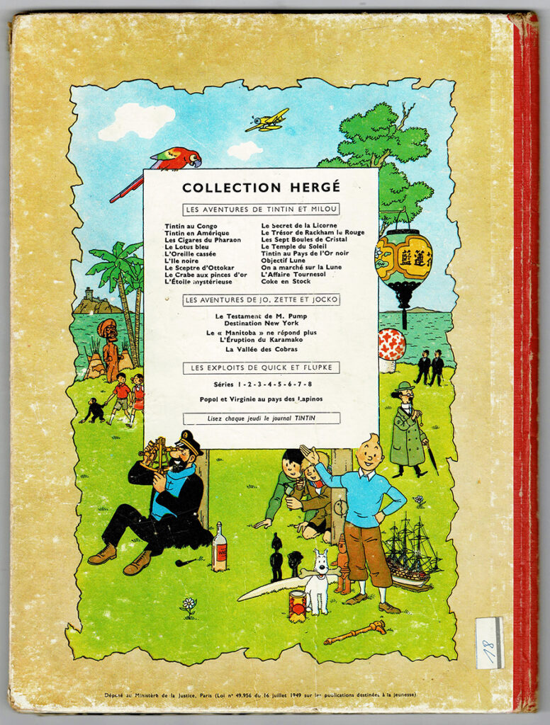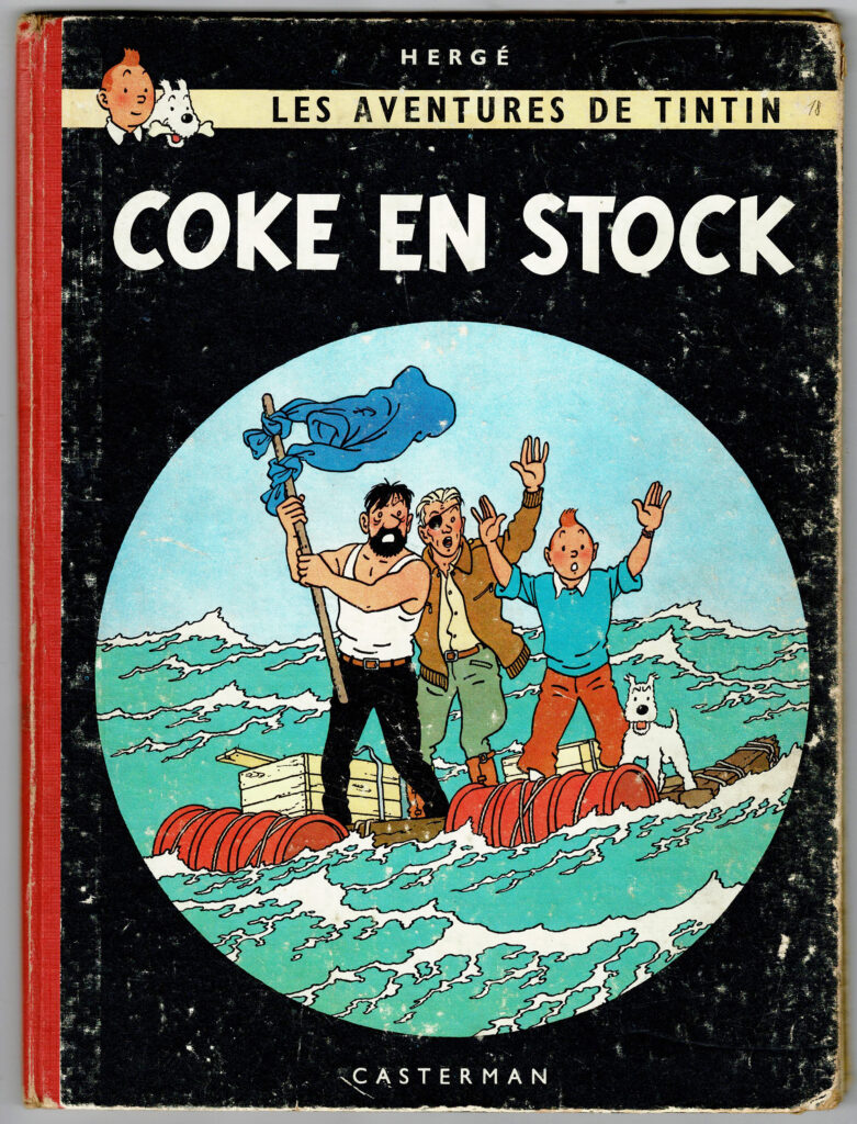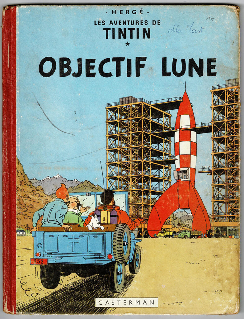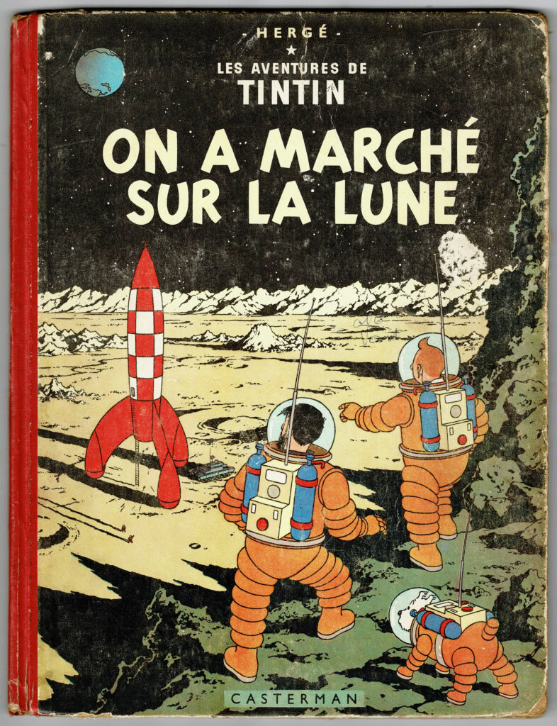Objectif Lune (eo B8), On a marché sur la Lune (eo B11), Coke en Stock (eo B24), Tintin au Tibet (eo B29). Ensemble de 4 albums en bon état.
