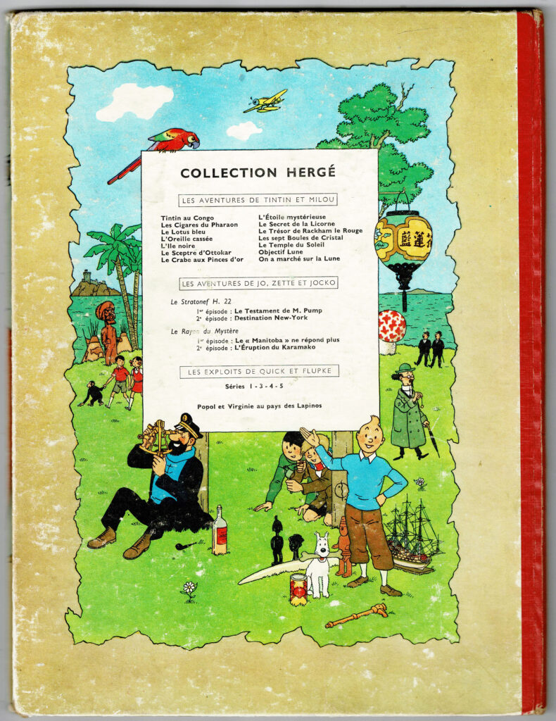 L’affaire Tournesol (eo B20), Les Cigares du Pharaon (eo B15), Au Pays de l’or noir (eo B4) Le Trésor de Rackham le Rouge (B7 Médaillon), L’oreille cassée (B8 feuillage bleu). Ensemble de 5 albums en bon état.