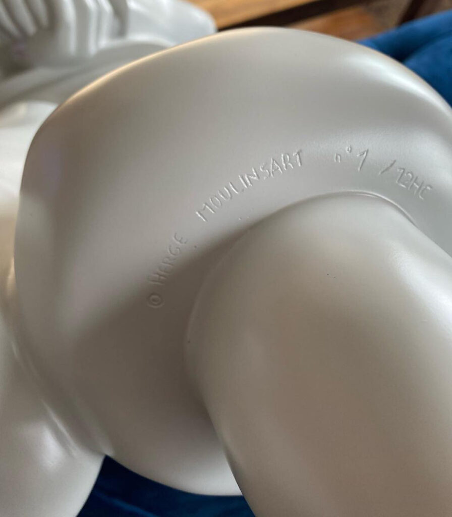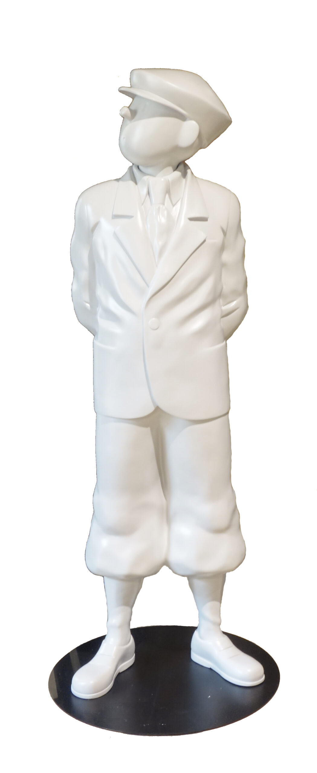 MOULINSART LEBLON : Tintin, le grand Tintin (45923), L’Oreille cassée, 2001, version hors commerce blanche nacrée, n°1/12, 130 cm, Rarissime.