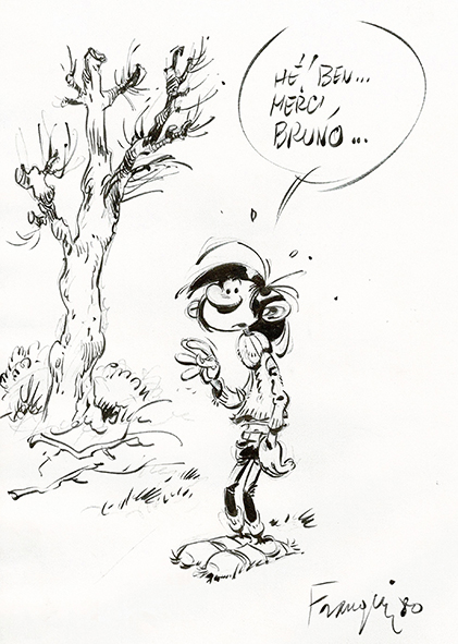Gaston Lagaffe, Lagaffe mérite des baffes en édition originale, agrémenté d’une dédicace à l’encre de chine. Très bon état.