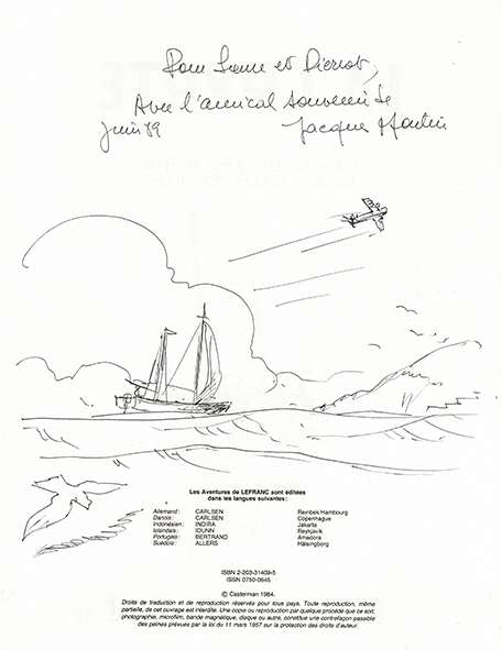 Lefranc, La Crypte en édition originale, agrémenté d’une dédicace. Proche de l’état neuf.