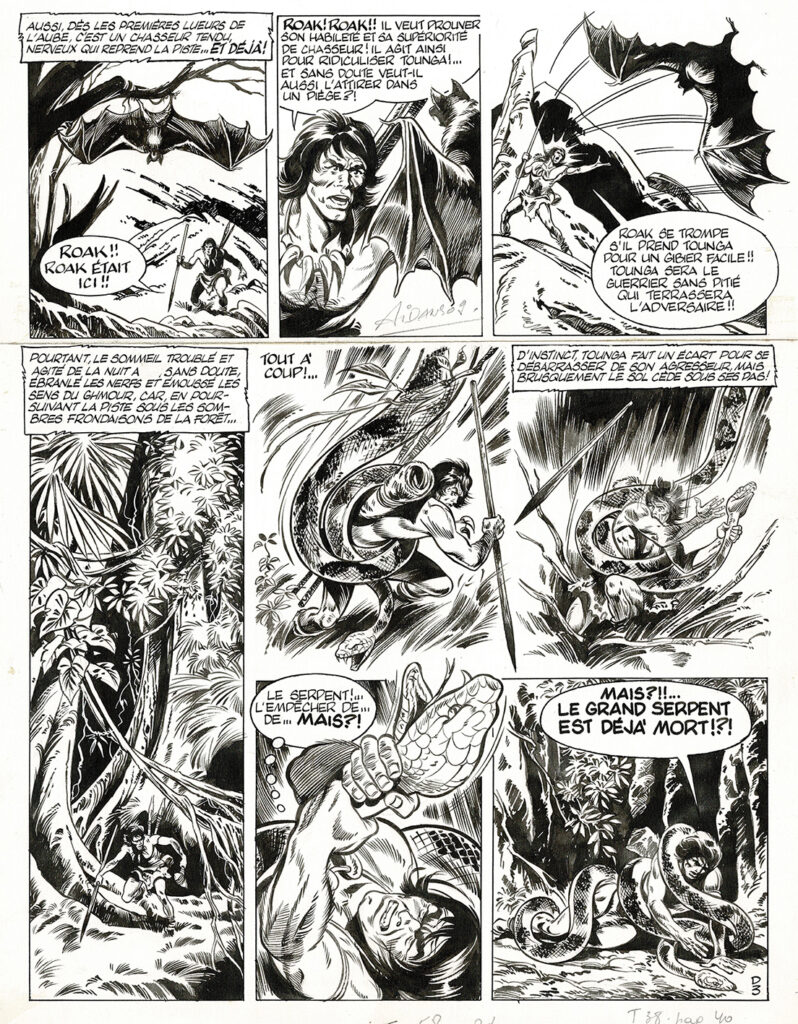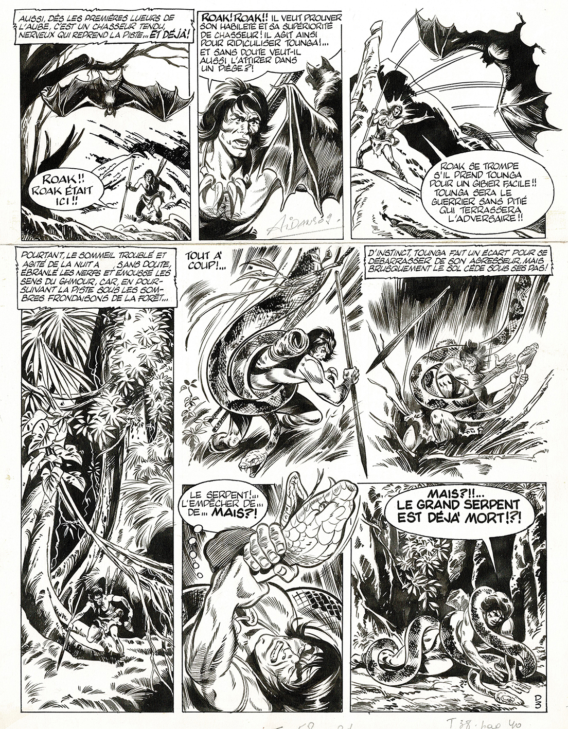 Tounga, Le défi, planche originale à l’encre de chine. Dimensions : 49,5 cm x 35,5 cm.