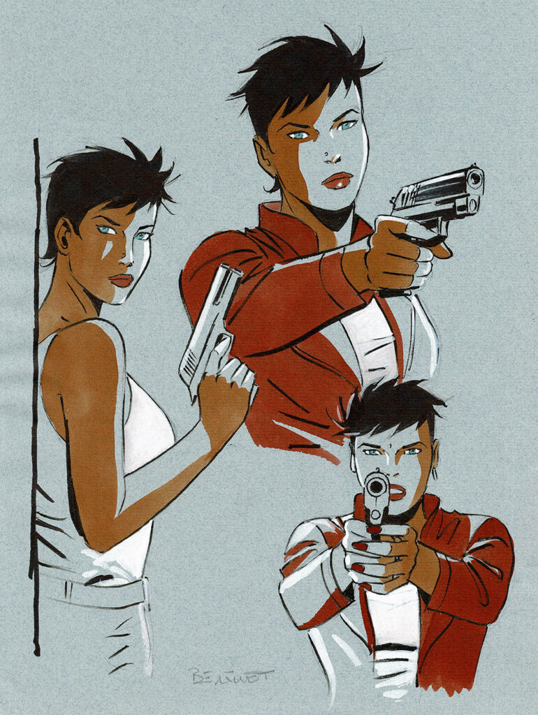 Motorcity, dessin original à l’encre de chine et à la gouache. Dimensions : 32 cm x 24 cm.