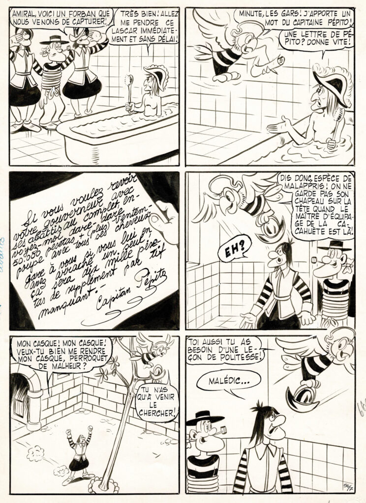 Pepito, double planche originale à l’encre de chine. Dimensions : 2x 30 cm x 20 cm.