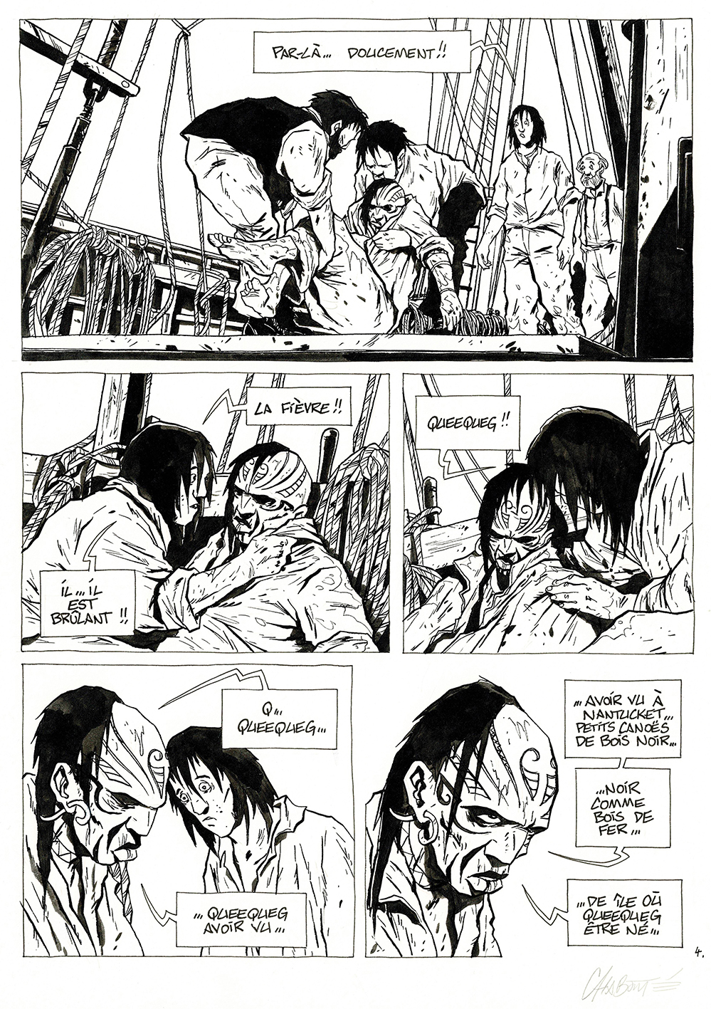 Moby Dick, Livre second, planche originale à l’encre de chine. Dimensions : 43 cm x 32,5 cm.