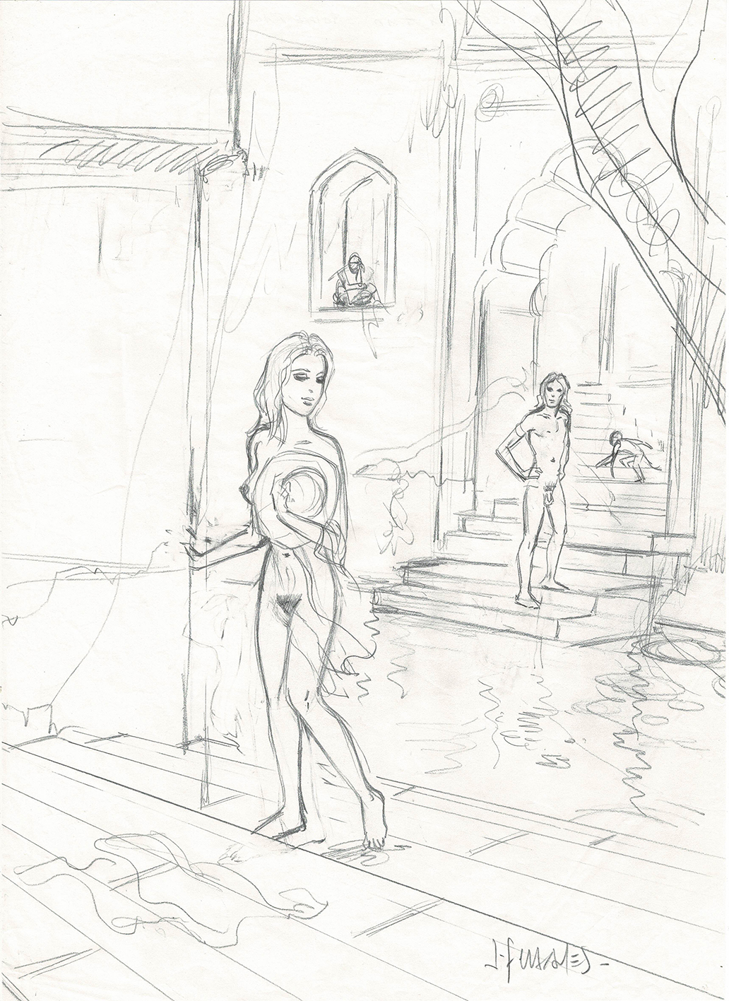 India Dreams, dessin original à la mine de plomb. Dimensions : 40 cm x 29 cm.