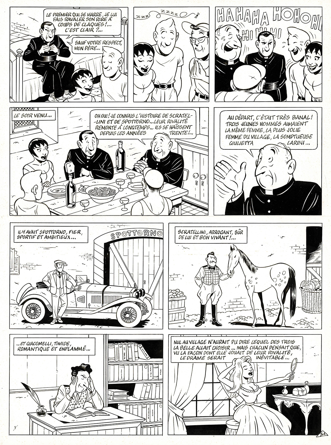 Mauro Caldi, La guerre des familles, planche originale à l’encre de chine. Dimensions : 48 cm x 36 cm.
