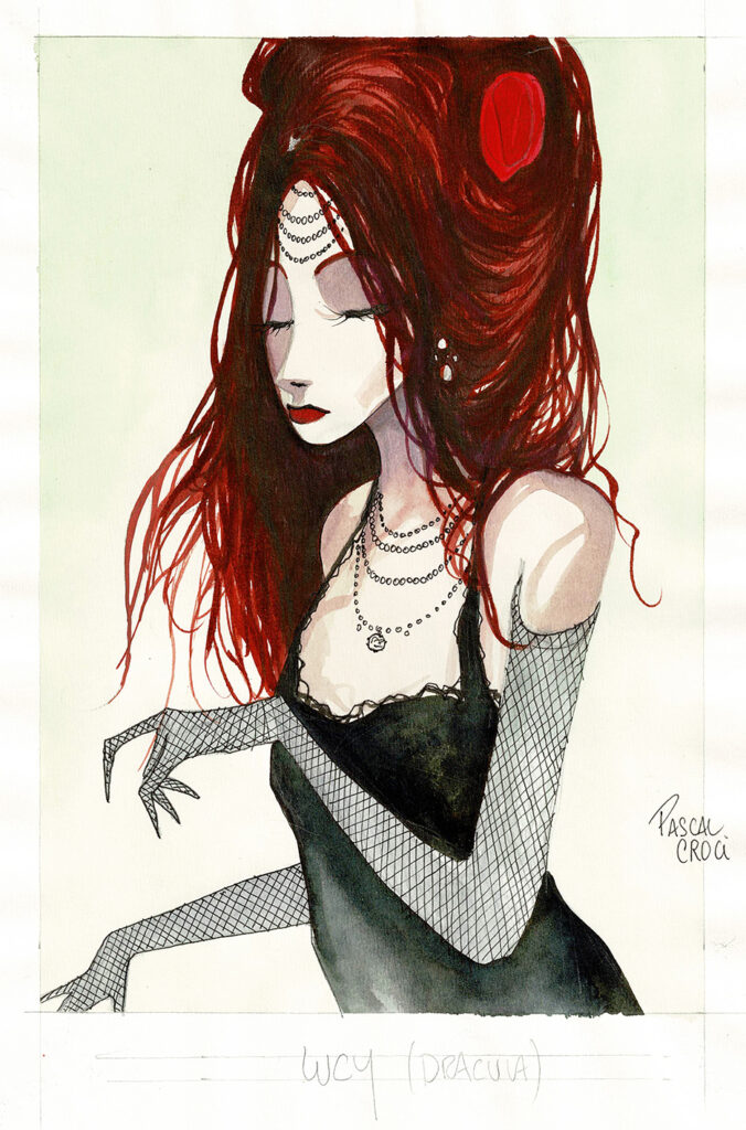 Dracula, dessin original à l’encre de chine et à l’aquarelle. Dimensions : 29,5 cm x 21 cm.