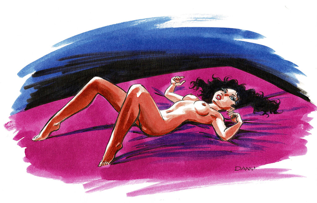 Pin-Up, dessin original à l’encre de chine et à l’aquarelle. Dimensions : 30 cm x 21 cm.