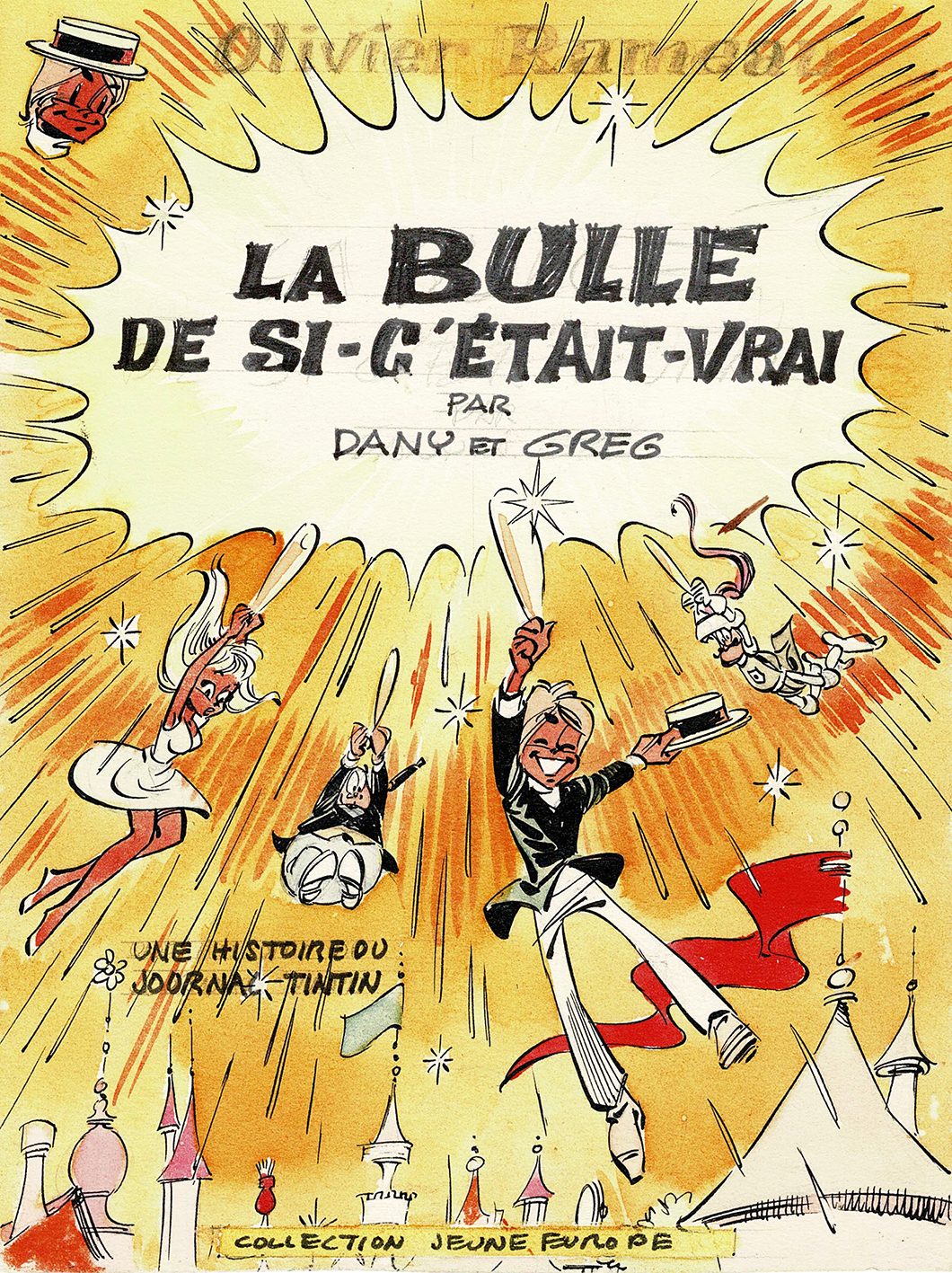 Olivier Rameau, La bulle de si-c’était-vrai, projet de couverture original à l’encre de chine et à l’aquarelle. Dimensions : 20 cm x 15 cm.