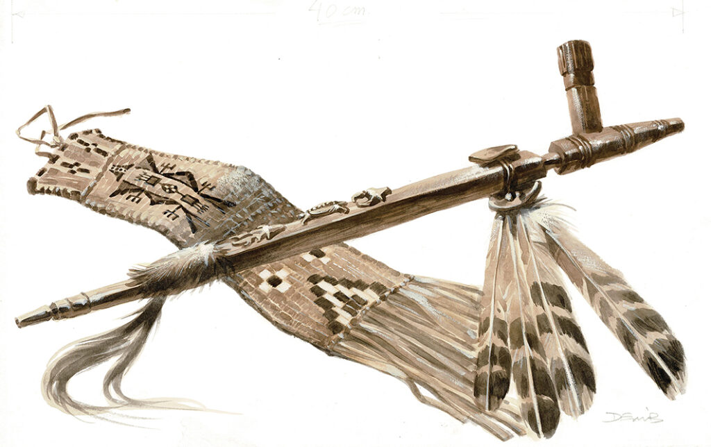 Celui qui est né deux fois, dessin original à l’aquarelle réalisé pour les pages de gardes de cette série. Dimensions : 46 cm x 29 cm.