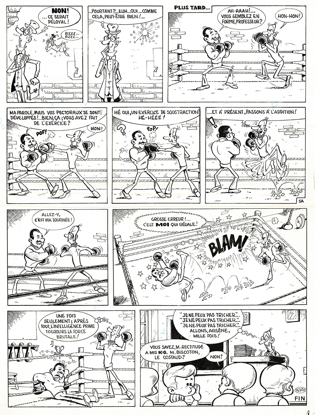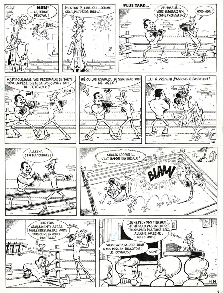 Génial Olivier, La vengeance de Mr Rectitude, planche originale à l’encre de chine. Dimensions : 44,5 cm x 36 cm.
