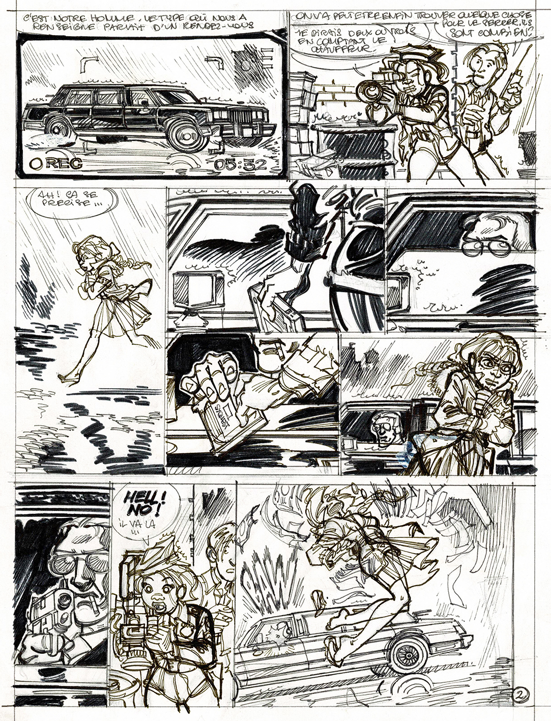 Soda, planche originale préparatoire au feutre fin. Dimensions : 29,5 cm x 21 cm.