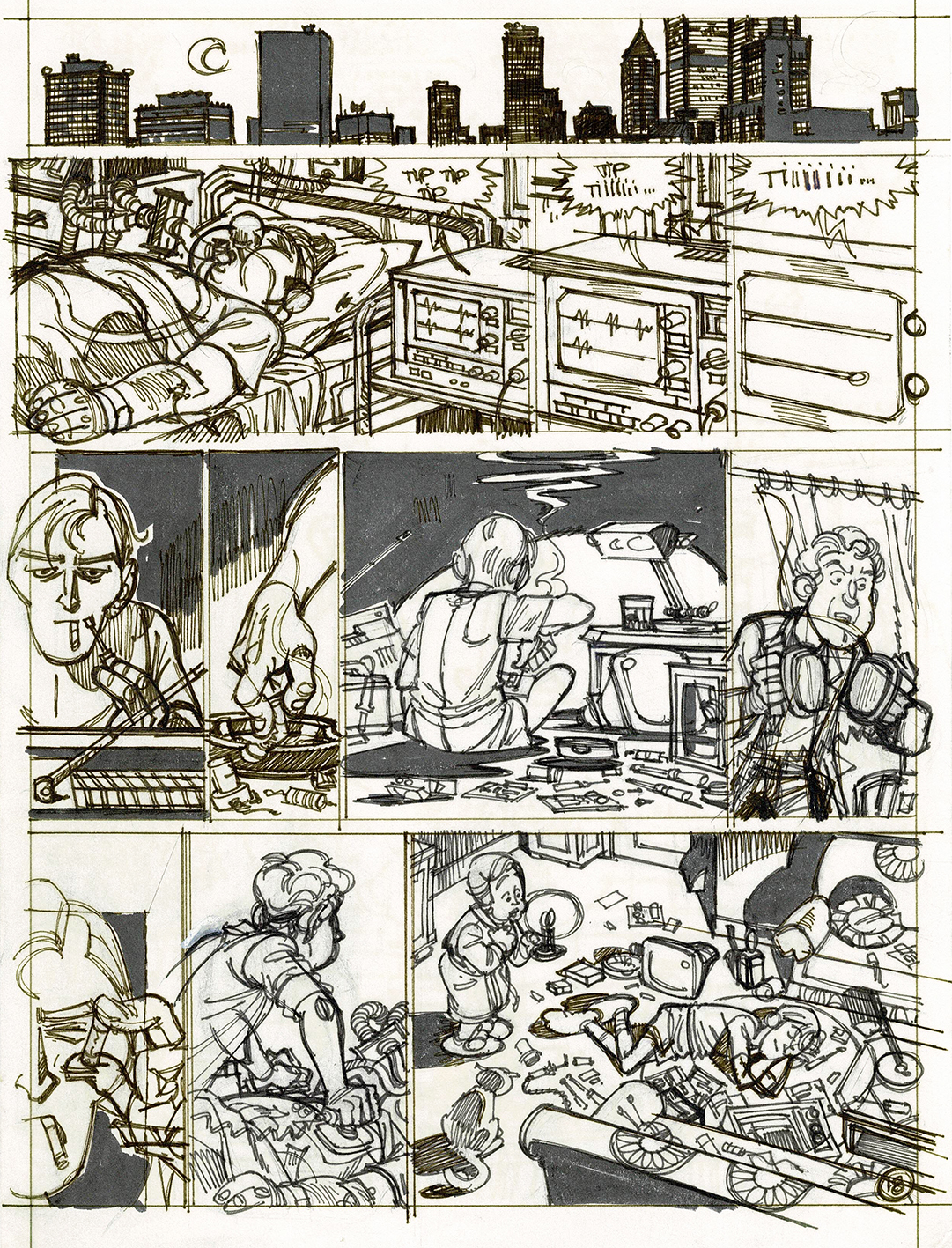 Soda, planche originale préparatoire au feutre fin. Dimensions : 29,5 cm x 21 cm.