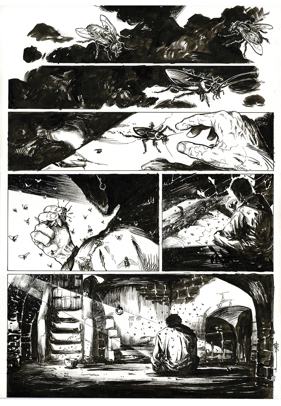 Gagner la guerre, Le Royaume de Ressine, planche originale à l’encre de chine pour cet album paru en 2019 au Lombard. Dimensions : 51 cm x 36,5 cm.