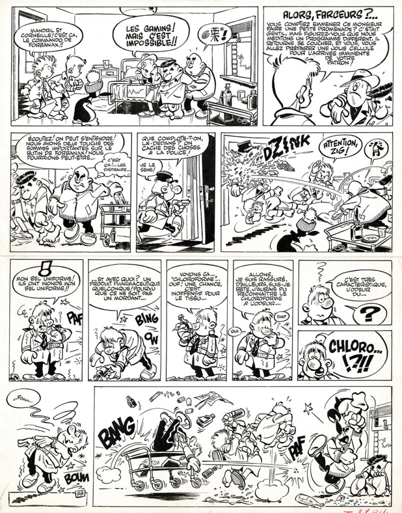 Zig et Puce, La pierre qui vole, planche originale à l’encre de chine. Dimensions : 43 cm x 35,5 cm.