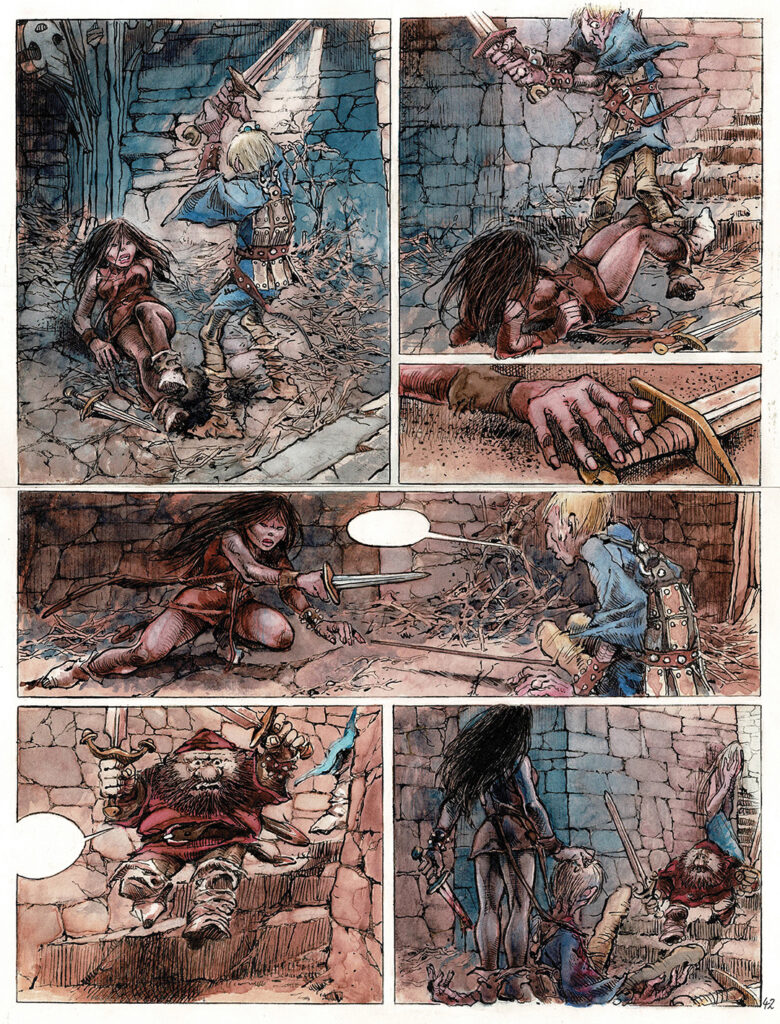 Laïyna, Le crépuscule des elfes, planche originale à l’encre de chine et à l’aquarelle. Dimensions : 45 cm x 36,5 cm.