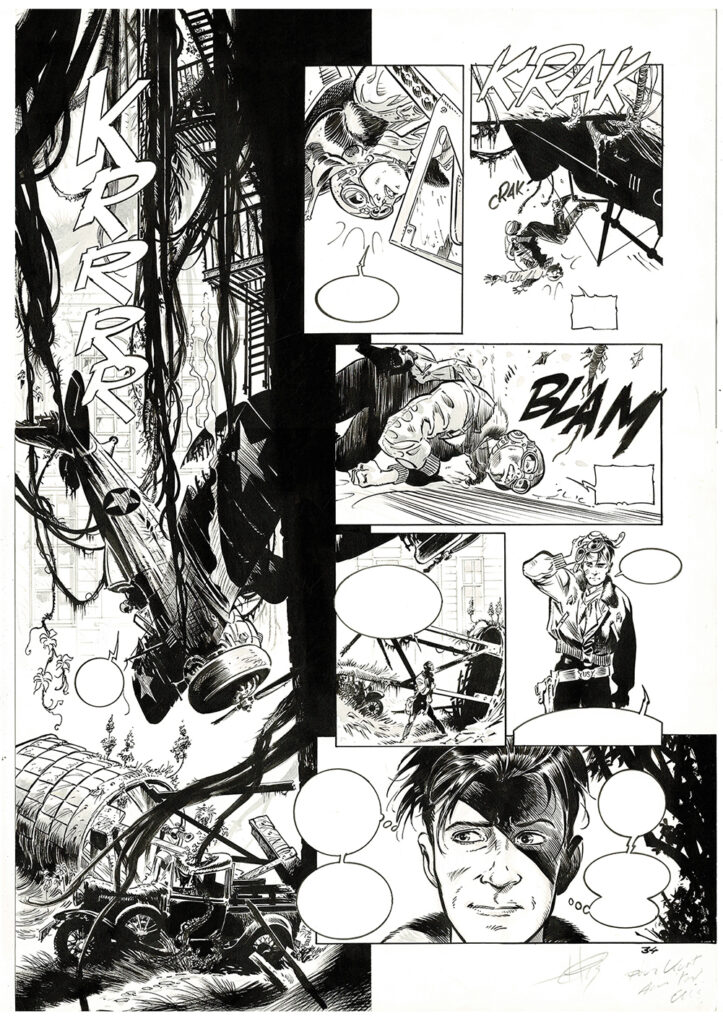 The kong crew, Manhattan jungle, planche originale à l’encre de chine. Dimensions : 51 cm x 35,5 cm.