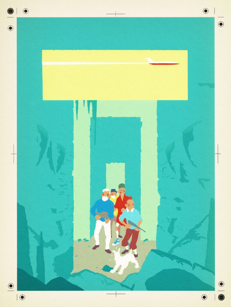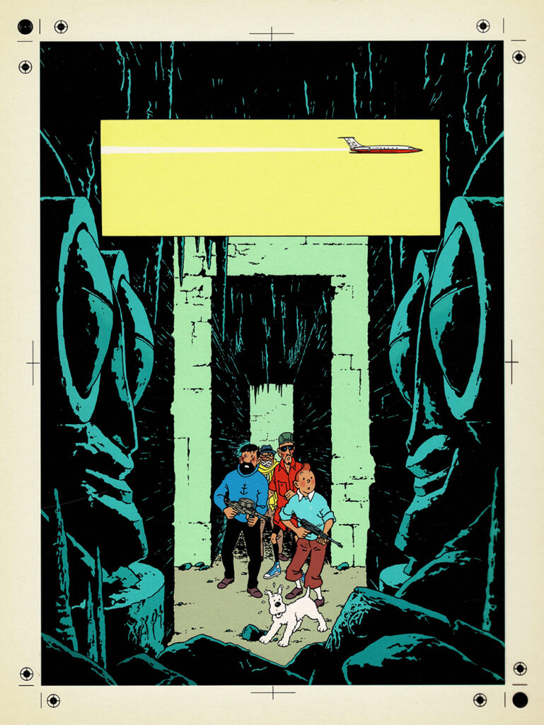 Tintin, Vol 714 pour Sydney, bleu de coloriage et son film noir pour la couverture de l’album. Dimensions : 41 cm x 32,5 cm.