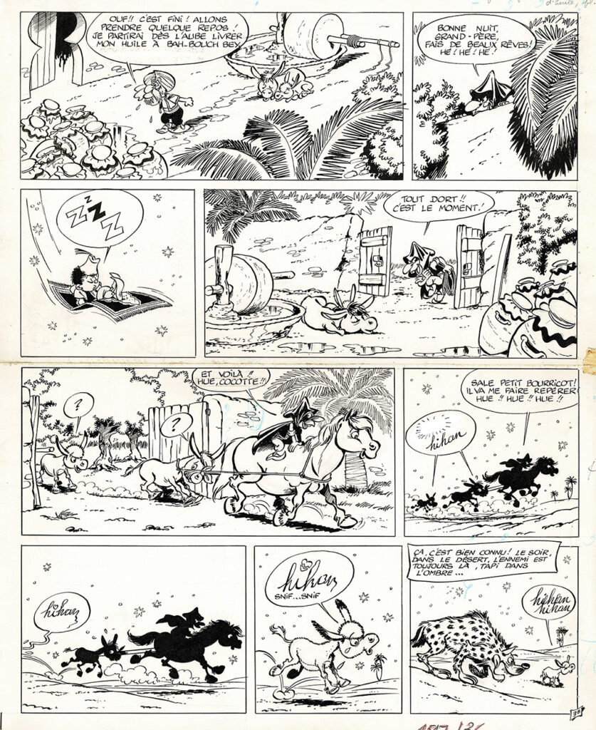 Foufi, Le marchand d’huile, planche originale à l’encre de chine. Dimensions : 43,5 cm x 34,5 cm.