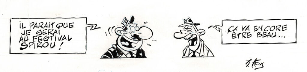 L’agent 212, dessin original à l’encre de chine pour un haut de page Spirou. Dimensions : 28 cm x 7 cm.