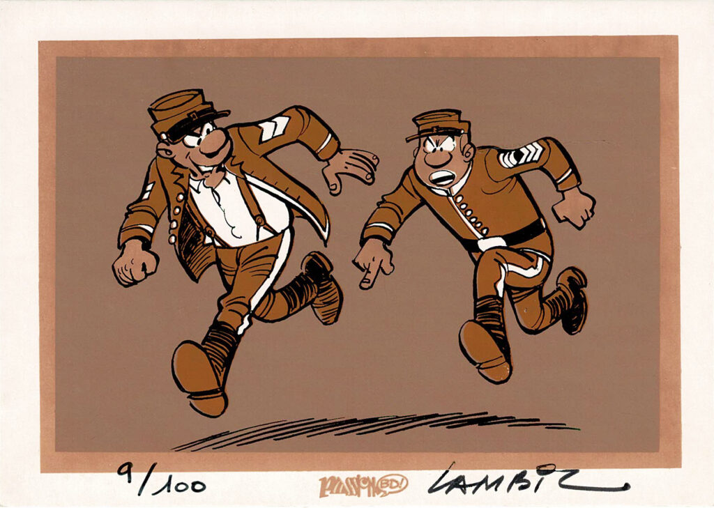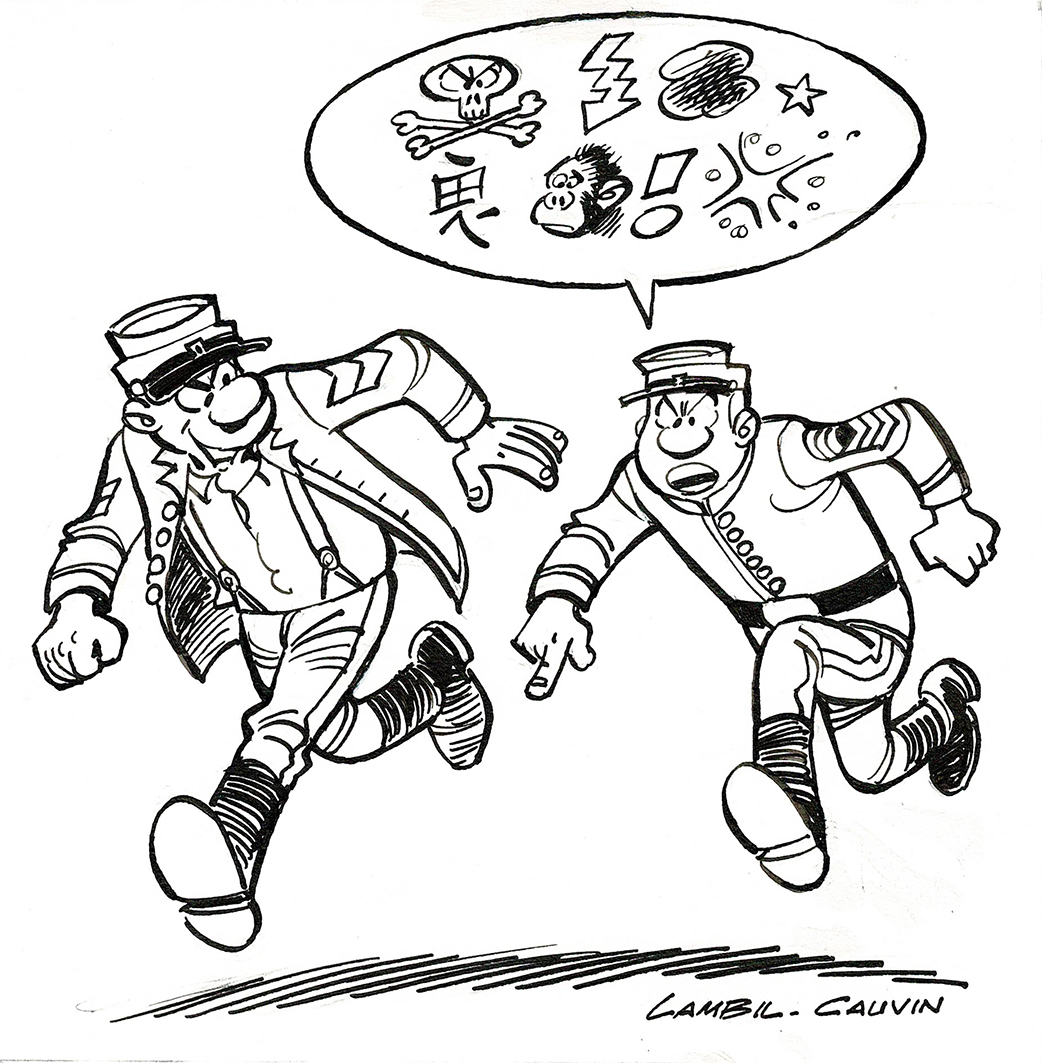 Les Tuniques Bleues, dessin original à l’encre de chine réalisé pour un ex-libris. On joint la publication. Dimensions : 18,5 c x 17,5 cm.