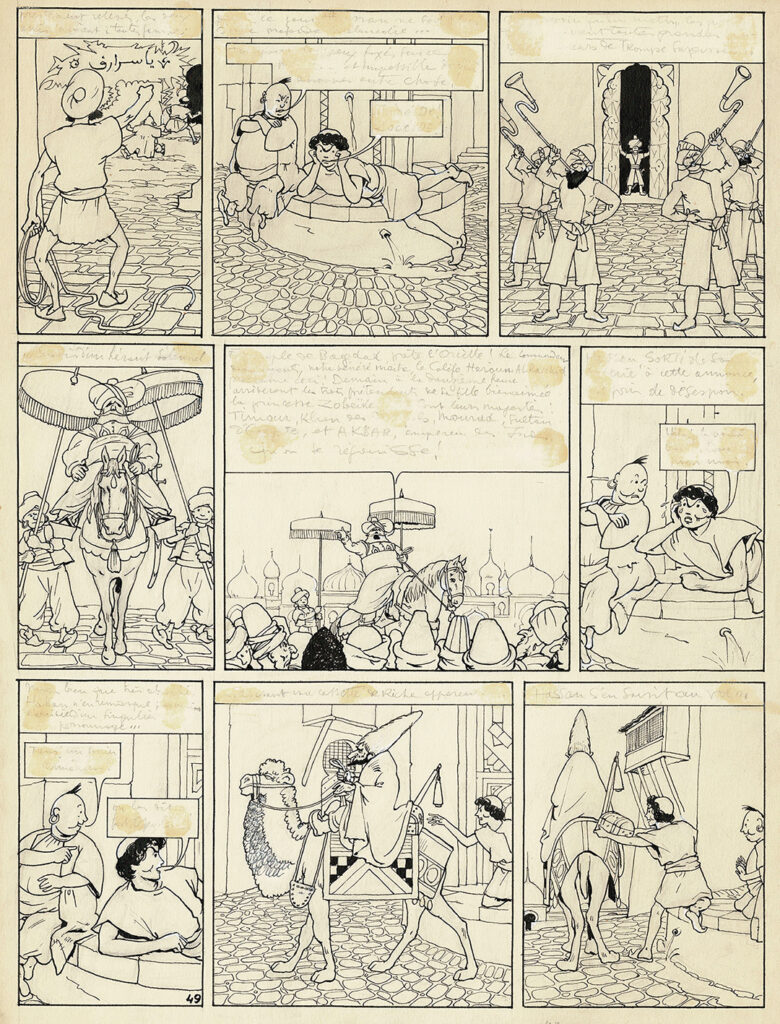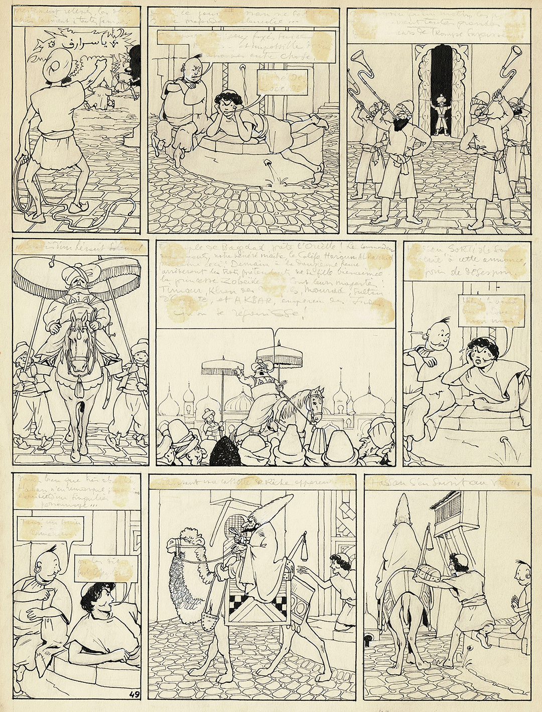 Hassan et Kaddour, planche originale à l’encre de chine. Dimensions : 46,5 cm x 34,5 cm.