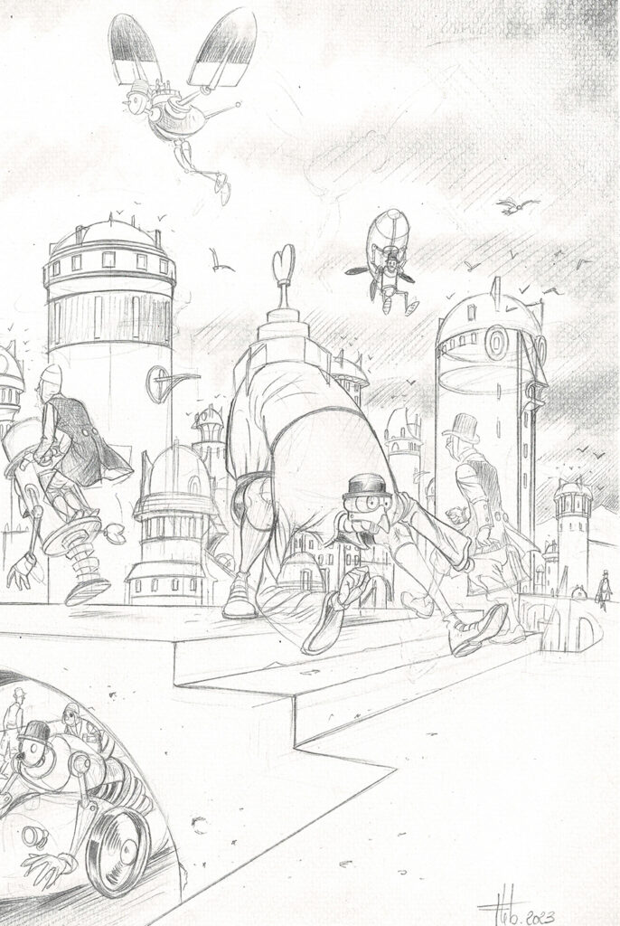 Horologium, dessin original à la mine de plomb. Dimensions : 29,5 cm x 21 cm.