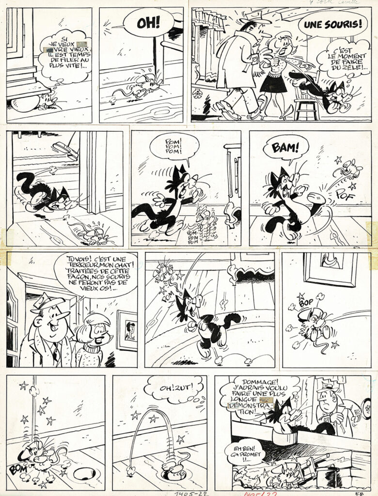 Sibylline et la betterave, planche originale à l’encre de chine pour cet album paru en 1967 chez Dupuis. Dimensions : 49 cm x 38 cm.
