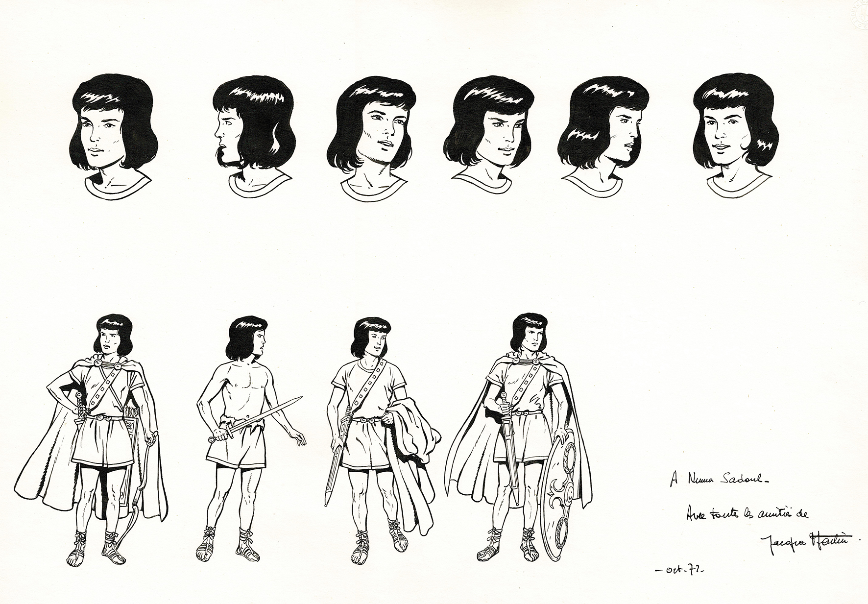 Alix, Enak, étude de personnage originale à l’encre de chine offerte à Numa Sadoul en 1972 (signée et dédicacée). Dimensions : 51 cm x 36,5 cm.