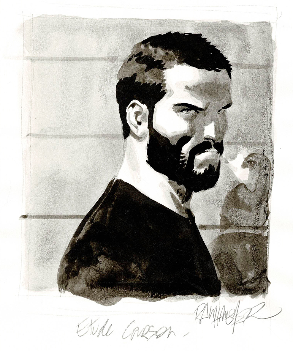 Page Noire, Carson McNeal, dessin original au lavis. Dimensions : 25 cm x 14 cm.