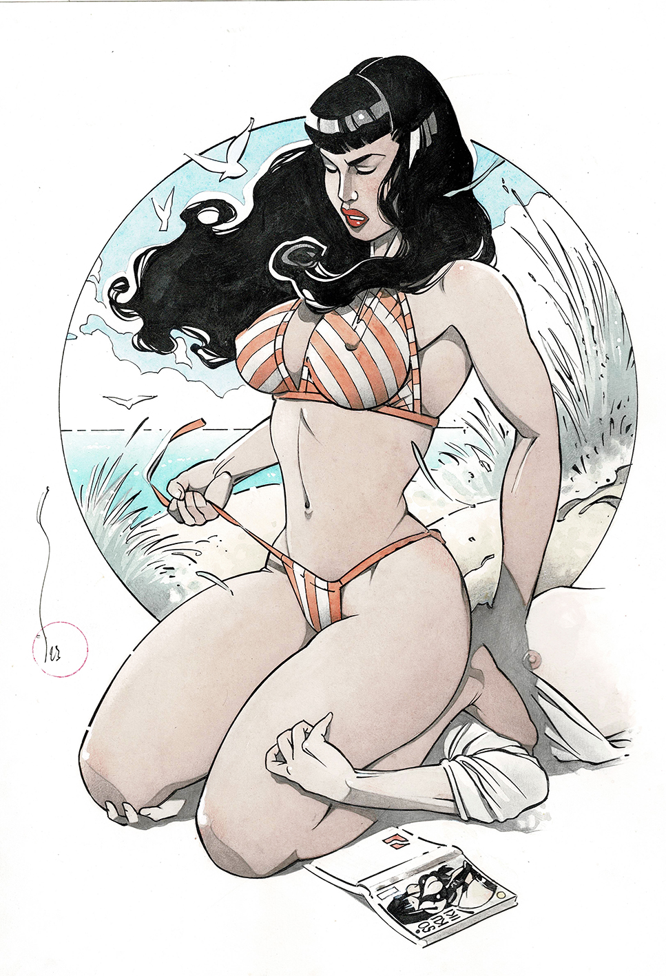 Estouffades, dessin original à l’encre de chine et à l’aquarelle pour ce catalogue paru en 2024. Dimensions : 42 cm x 29,5 cm.