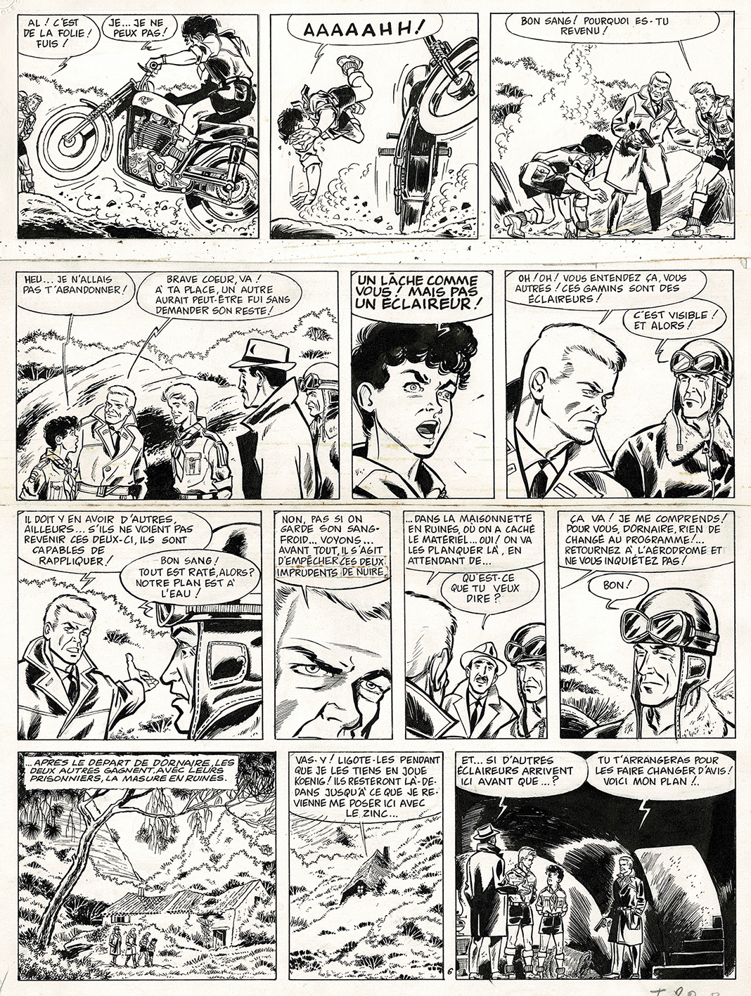 Les aventures des 3 A, planche originale à l’encre de chine. Dimensions : 41,5 cm x 32 cm.
