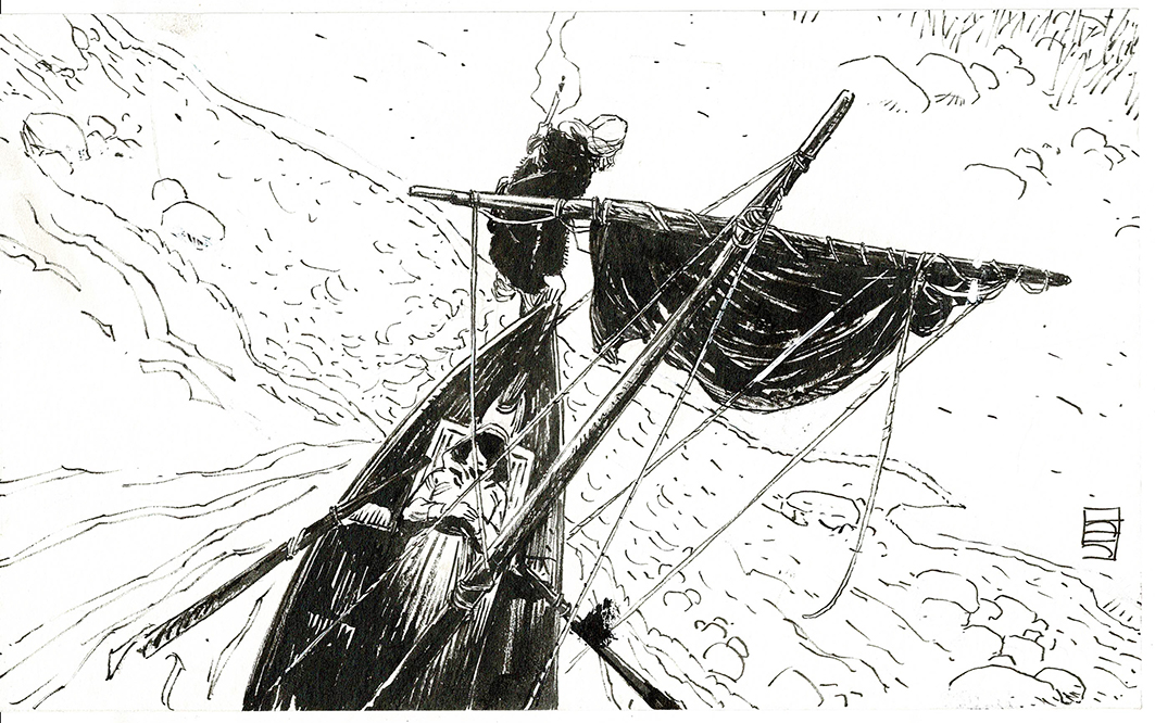 Thorgal, dessin original à l’encre de chine. Dimensions : 23 cm x 14 cm.